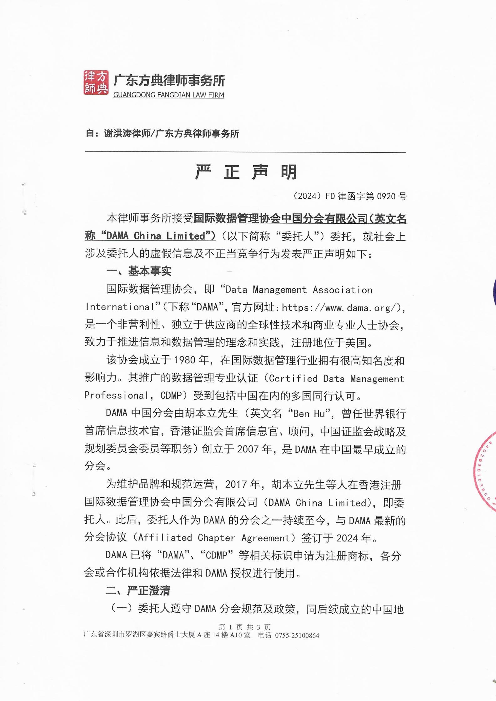 就目前社会上涉及我会的虚假信息和不正当竞争行为,我会委托广东方典律师事务所发表严正声明如下。